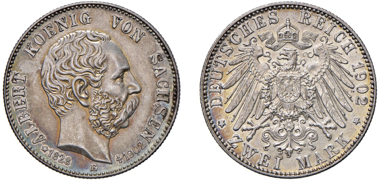 GERMANIA - SASSONIA - ALBERTO DI SASSONIA (1873-1902) - 2 Marchi 1902, Lipsia.
