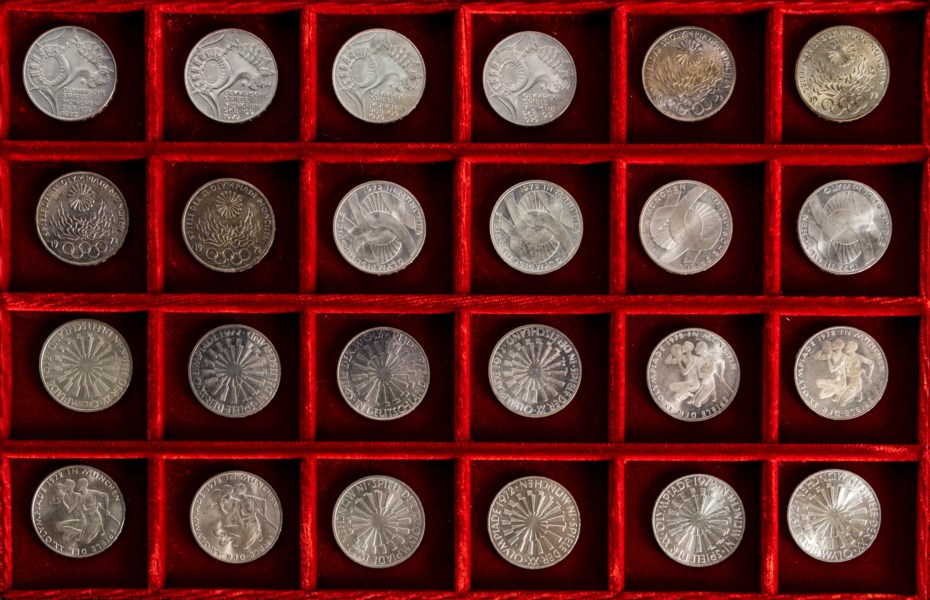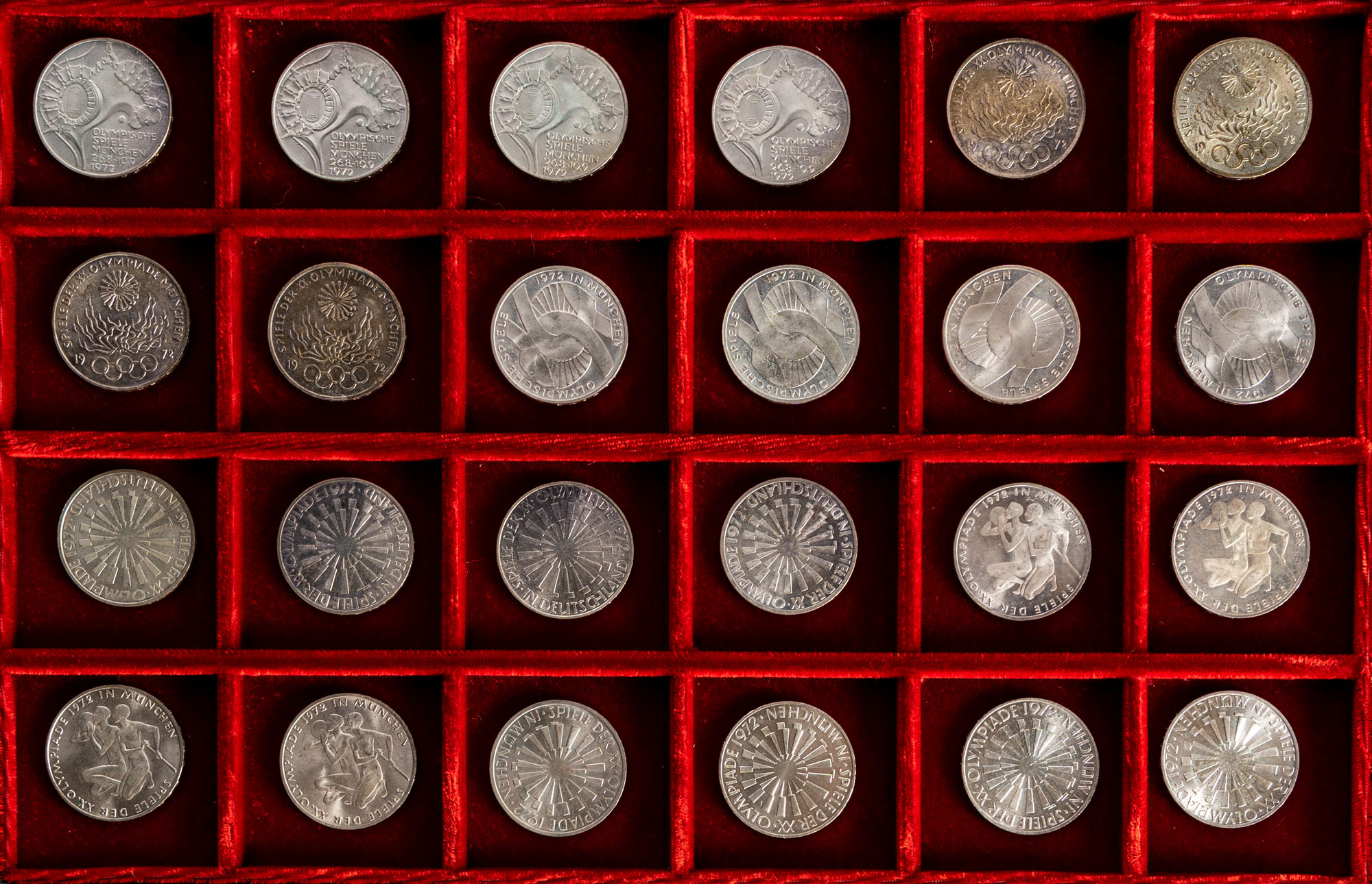 GERMANIA - REPUBBLICA FEDERALE - Serie completa delle 24 monete da 10 marchi 1972, dedicate alle Olimpiadi di Monaco 1972 (per tipo e zecca).