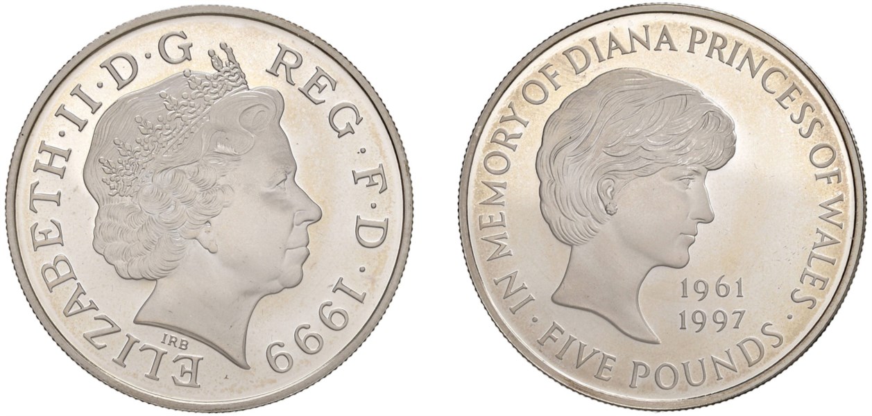 Dritto: Testa coronata a destra; - Rovescio: Testa nuda a destra di Lady Diana.