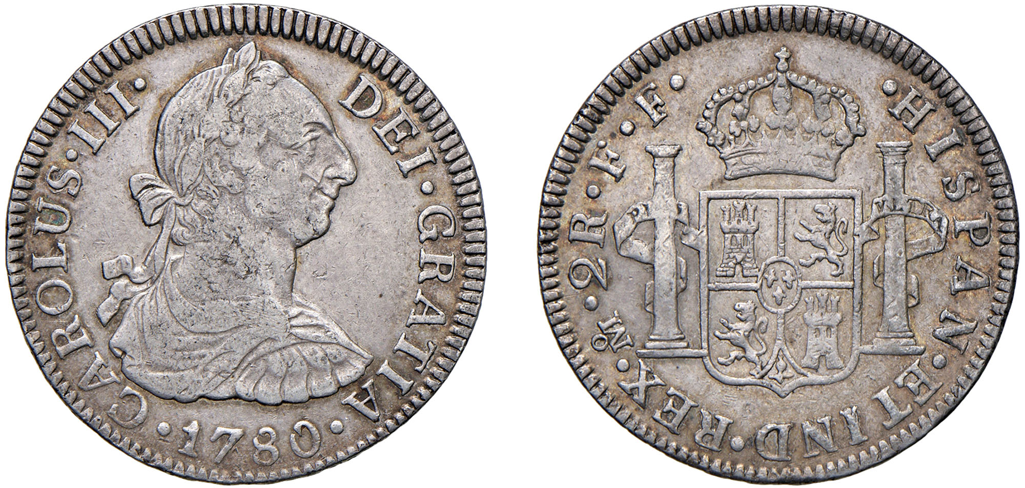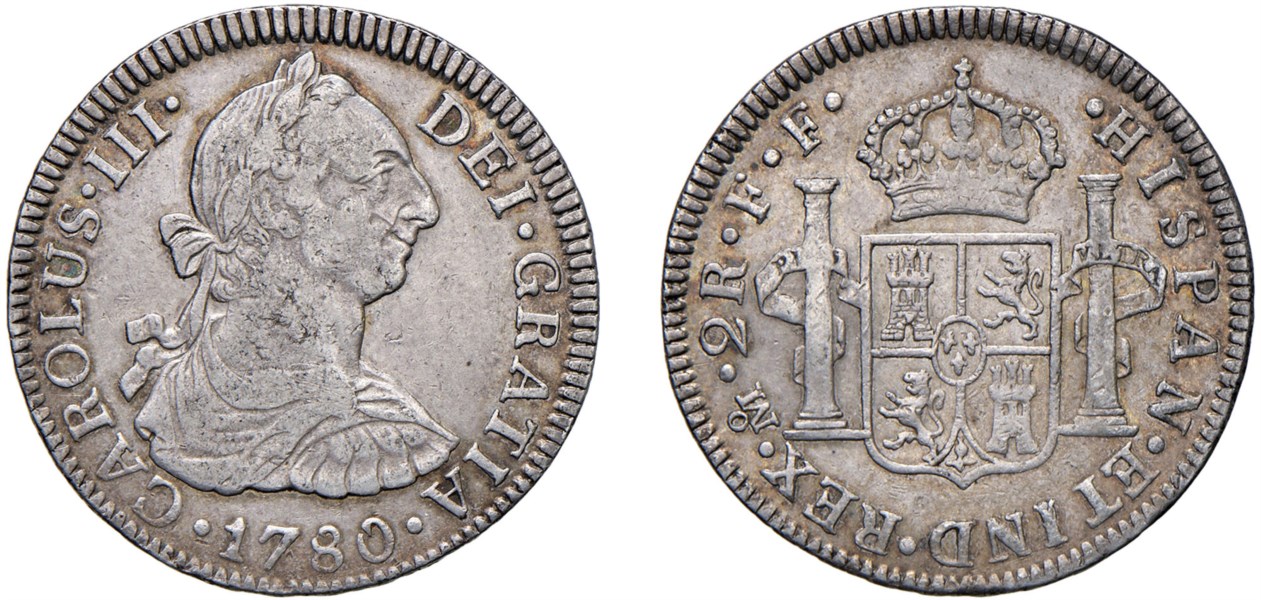 MESSICO - CARLO III (1759-1788) - 2 Reales, 1780 (FF), Città del Messico.