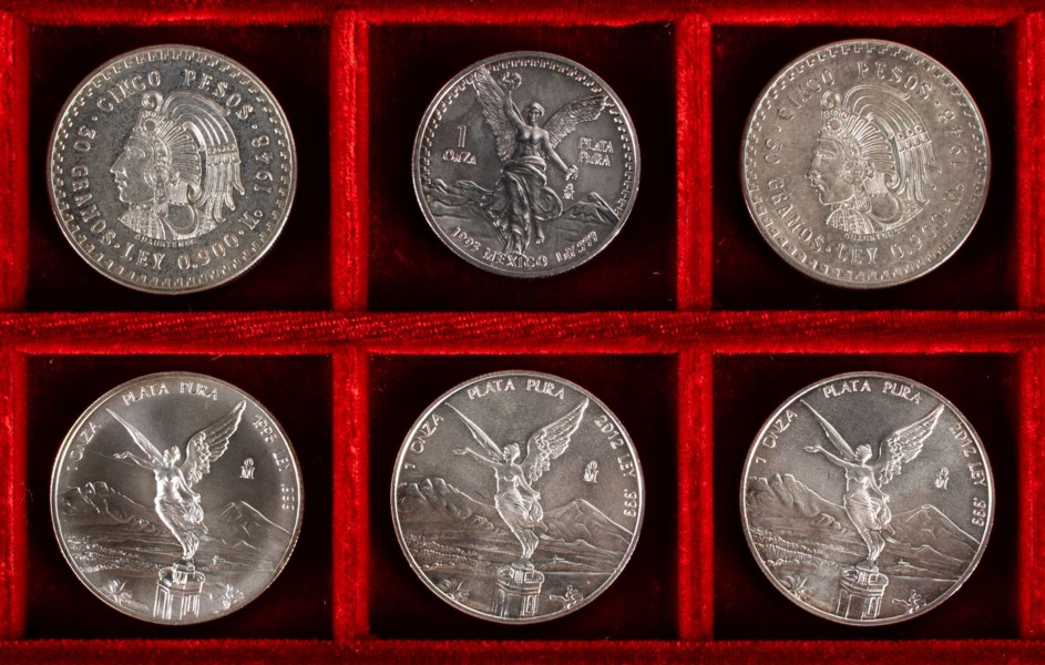 MESSICO - Lotto 6 monete da 5 pesos e 1 oncia, varie date.