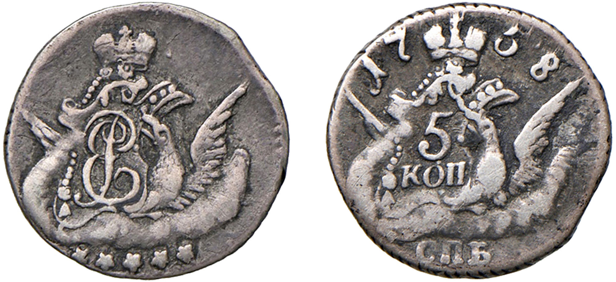 RUSSIA - ELISABETTA II, Imperatrice (1741-1761) - 5 Kopeki, 1758, San Pietroburgo.
