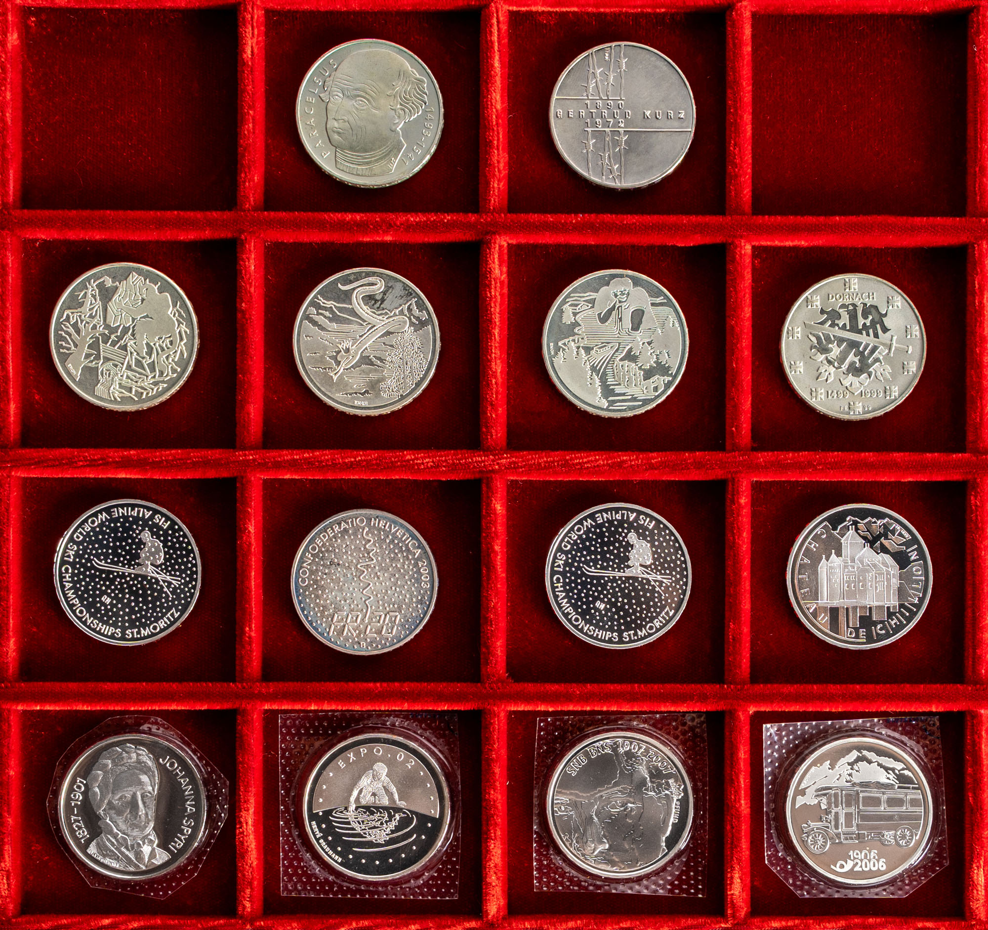 SVIZZERA - Lotto di 14 monete da 20 franchi (dal 1992 al 2006).
