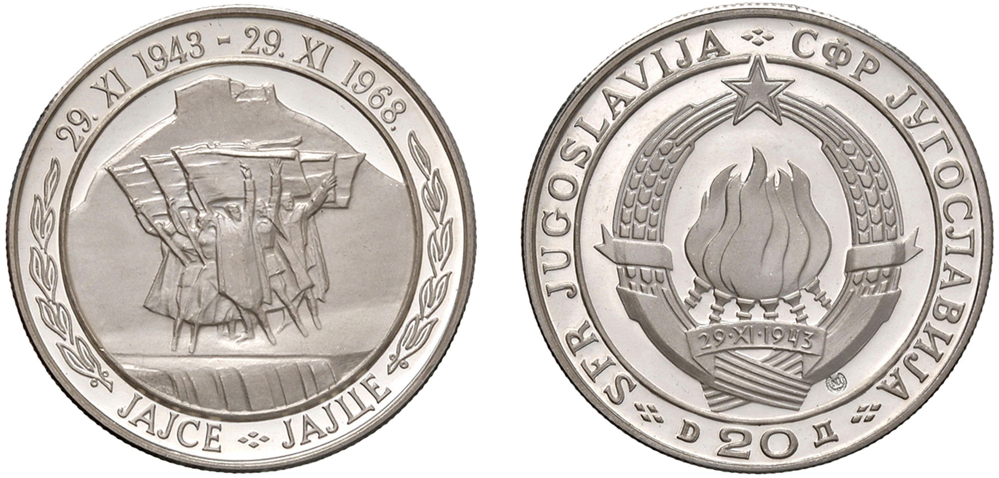 YUGOSLAVIA, Repubblica Socialista Federale (1963-1992) - 20 dinara 1968, 25° anniversario della Repubblica.