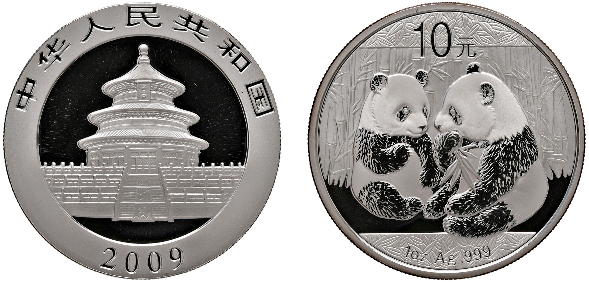 CINA - Repubblica Popolare (1949-) - 10 Yuan da 1 oncia, Serie Panda Proof, 2009.