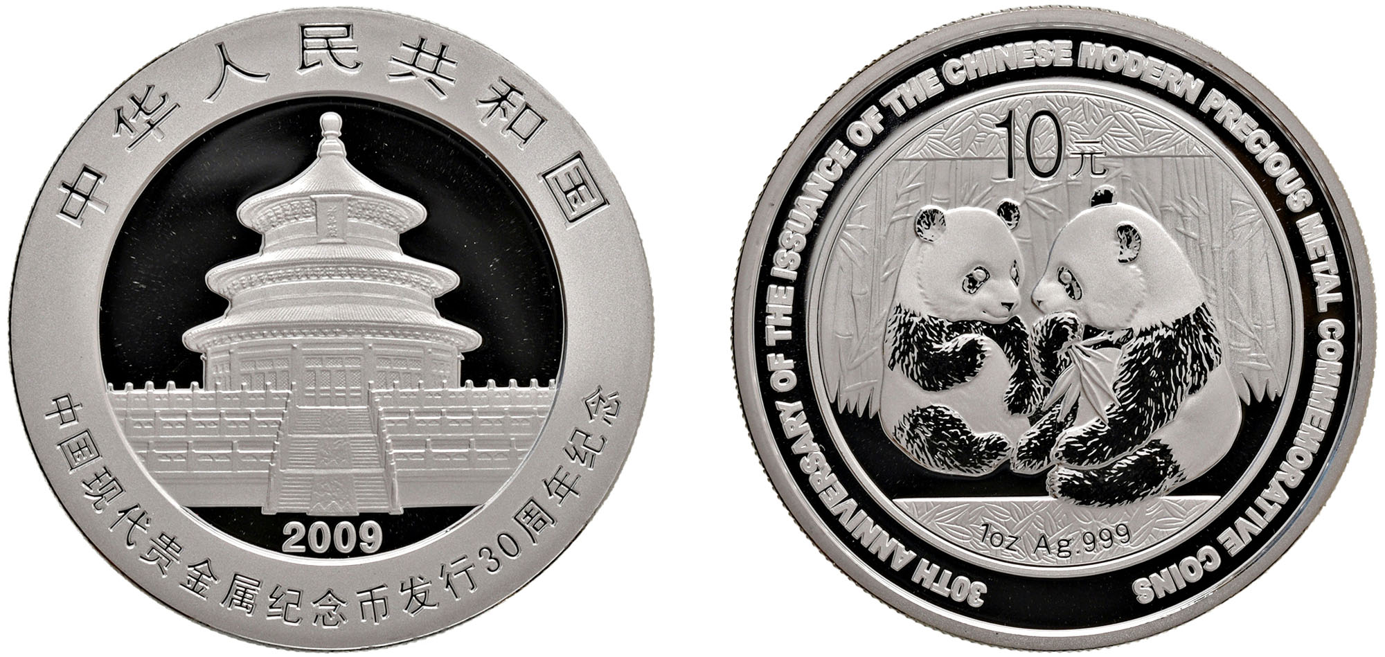 CINA - Repubblica Popolare (1949-) - 10 Yuan da 1 oncia, Serie Panda Proof, 2009.
