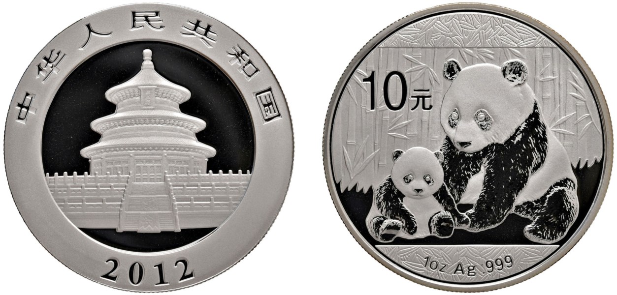 CINA - Repubblica Popolare (1949-) - 10 Yuan da 1 oncia, Serie Panda Proof, 2012.