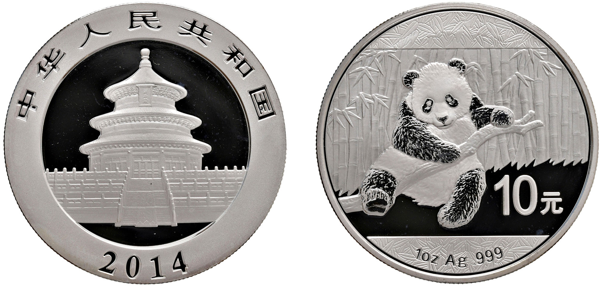 CINA - Repubblica Popolare (1949-) - 10 Yuan da 1 oncia, Serie Panda Proof, 2014.