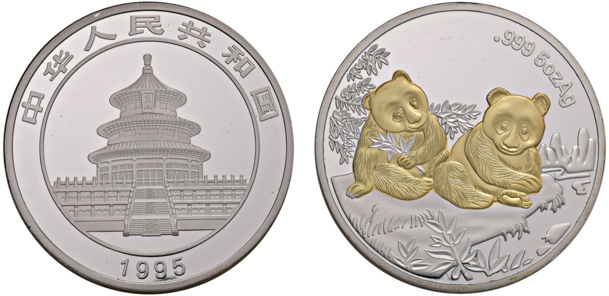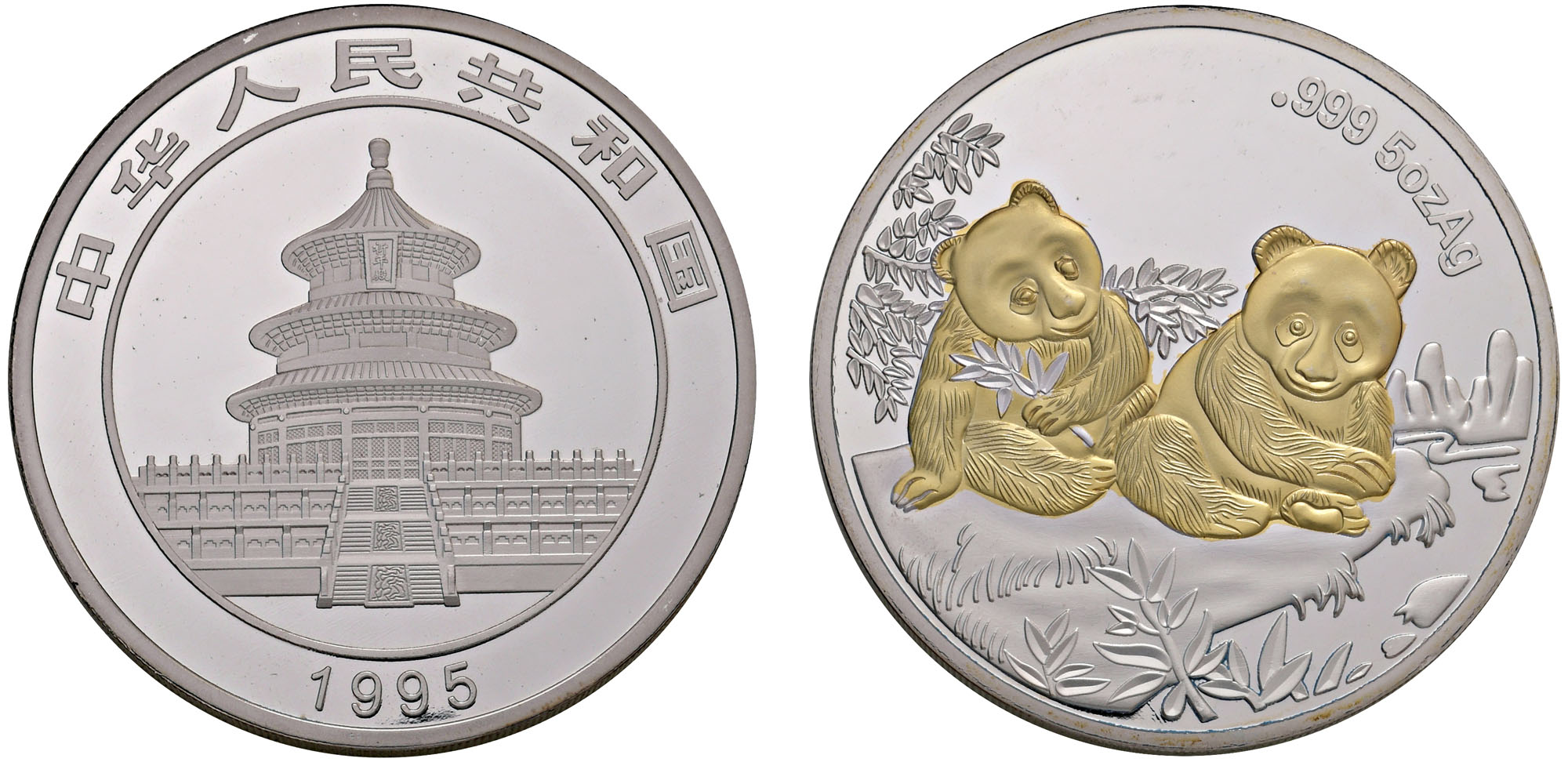 CINA - Emissione privata - 5 once Panda, PROOF, 1995.