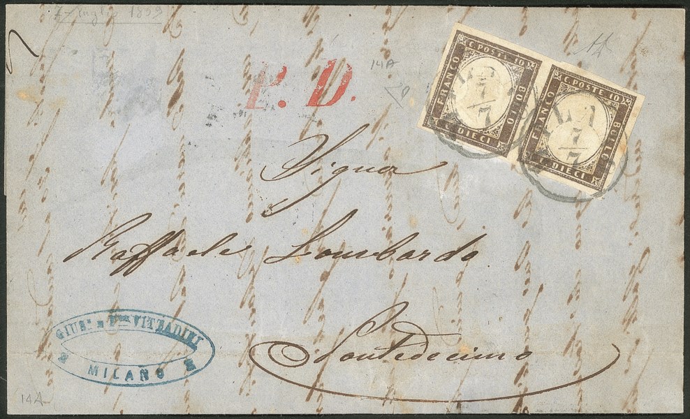 Antichi Stati Italiani - Lombardo Veneto - Sardegna coppia c.10 bruno annullati a MILANO 7/7 del 1859