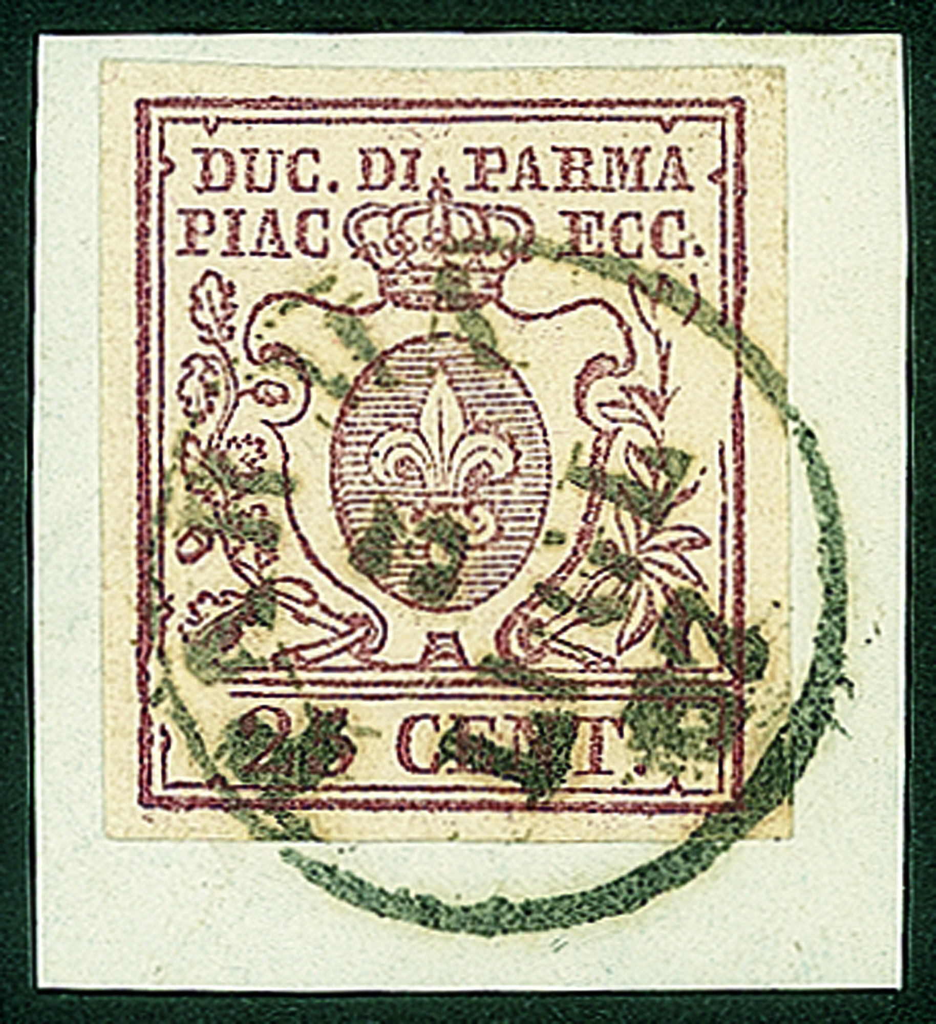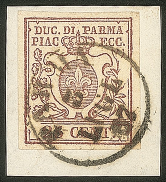 Antichi Stati Italiani - Parma - Frammento con c.25 bruno lilla annullo PARMA 3 LUGL.57