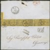 Antichi Stati Italiani - Parma - Lettera affrancata con un esemplare + striscia verticale di cinque del c.5 giallo arancio