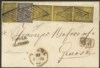 Antichi Stati Italiani - Parma - Lettera con c.5 giallo singolo più striscia verticale di tre + c.10 nero annullati a losanga + cerchio piccolo PARMA 25 FEBB.59