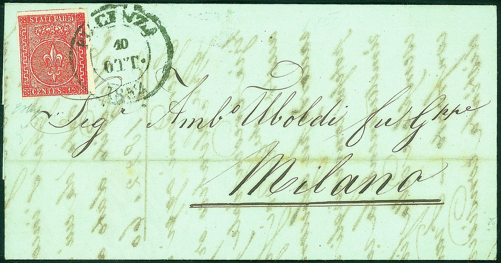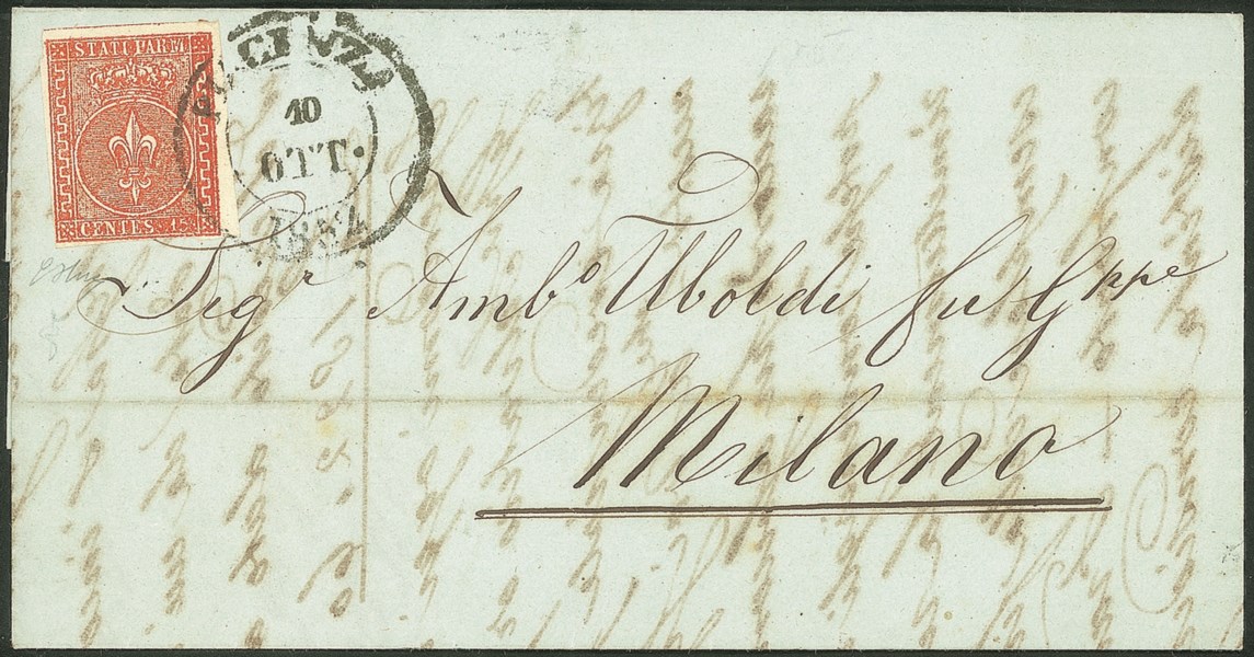Annullo d.c PIACENZA 10 OTT 1854, annullo del primo tipo, per Milano