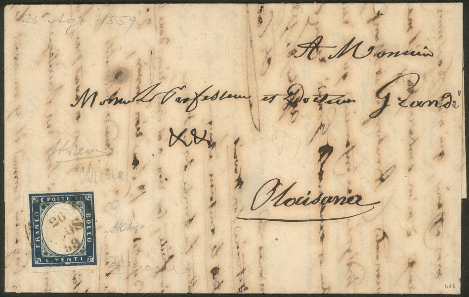 Antichi Stati Italiani - Parma - Lettera con Sardegna c.20 azzurro scuro