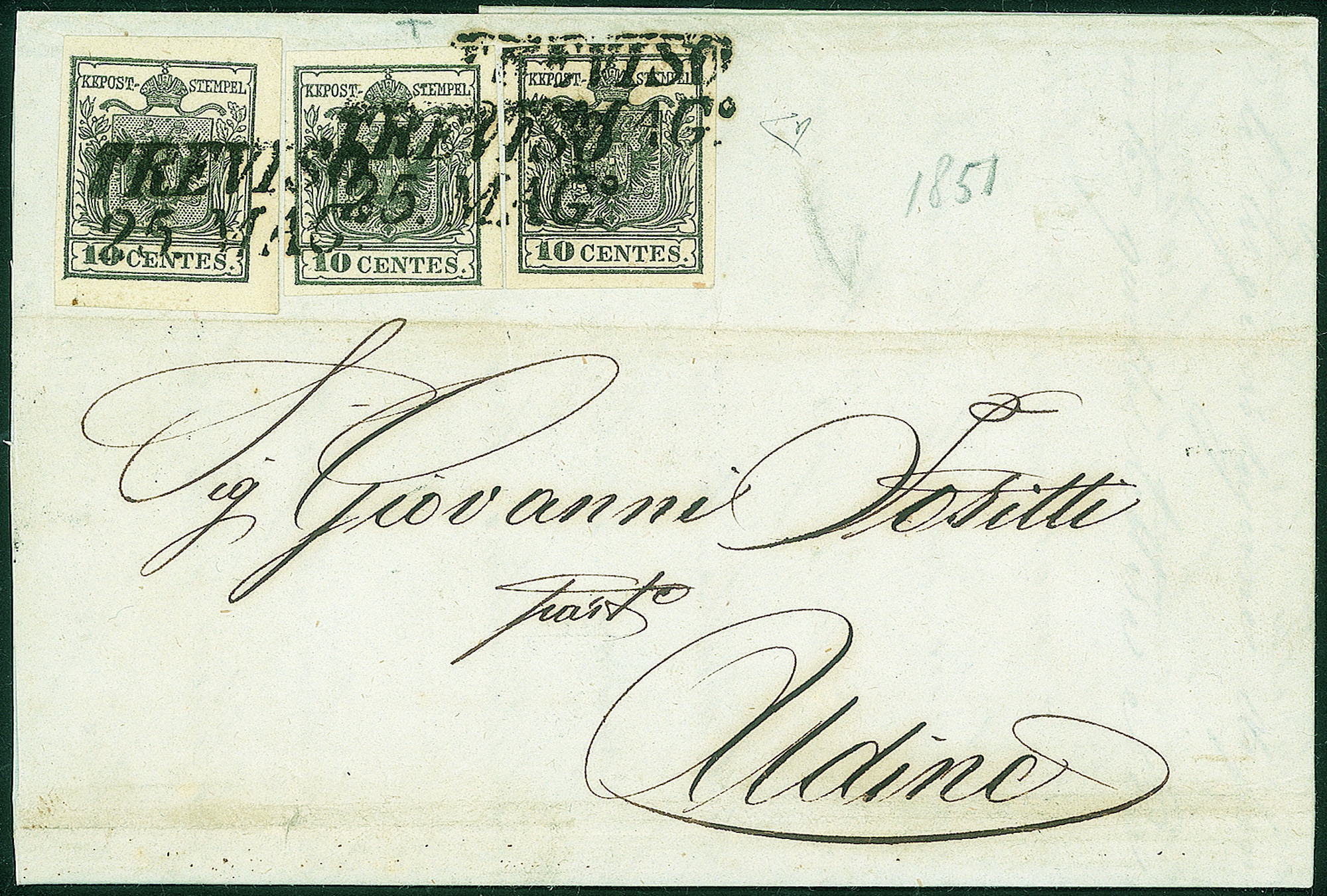 Antichi Stati Italiani - Lombardo Veneto - Lettera affrancata con tre 10 cent (2)