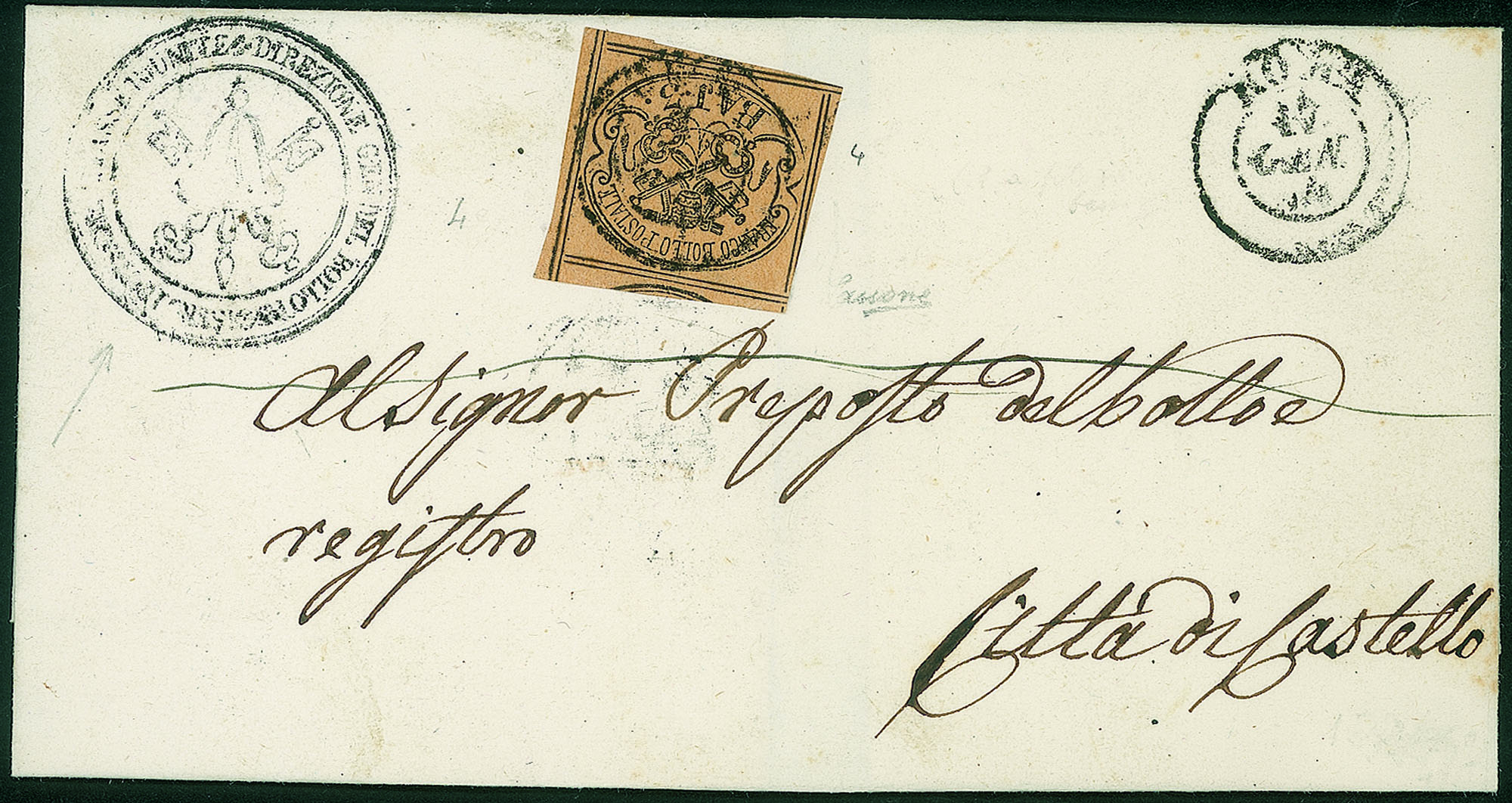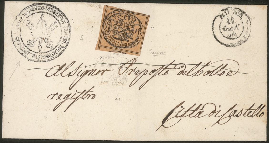 Antichi Stati Italiani - Stato Pontificio - Lettera affrancata con 3 baj (4)