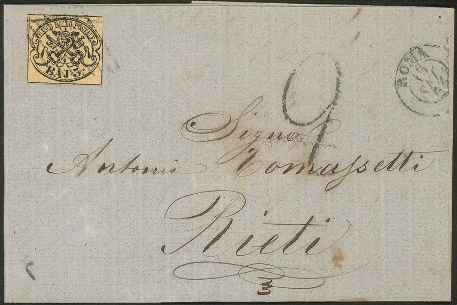 Antichi Stati Italiani - Stato Pontificio - Lettera affrancata con 3 baj (4A)