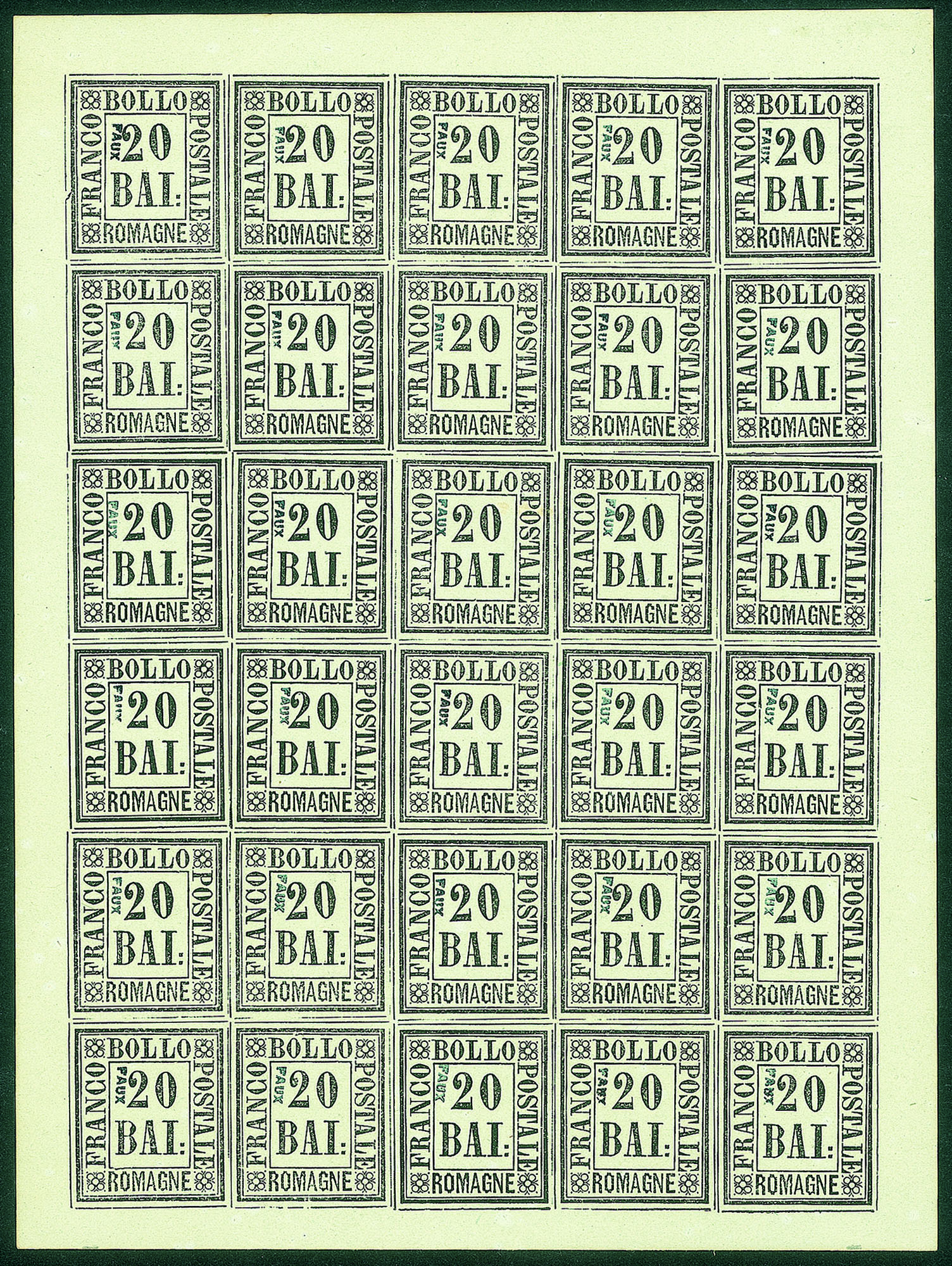 Antichi Stati Italiani - Romagne - Falsi d'Epoca - Emissione completa in fogli di 30 esemplari (1/9)
