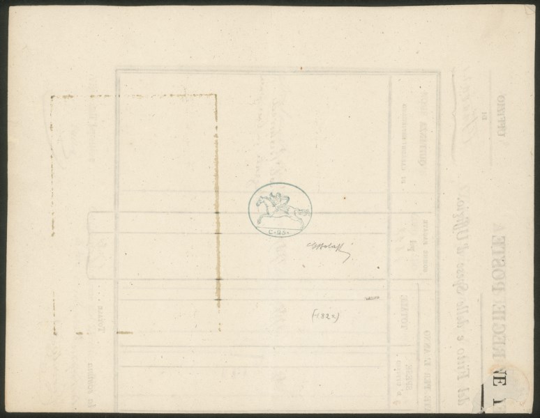 Su foglio di carta postale usato in epoca successiva come carta intestata per corrispondenza d'ufficio - Chiavari 1822 - cert. Bolaffi
