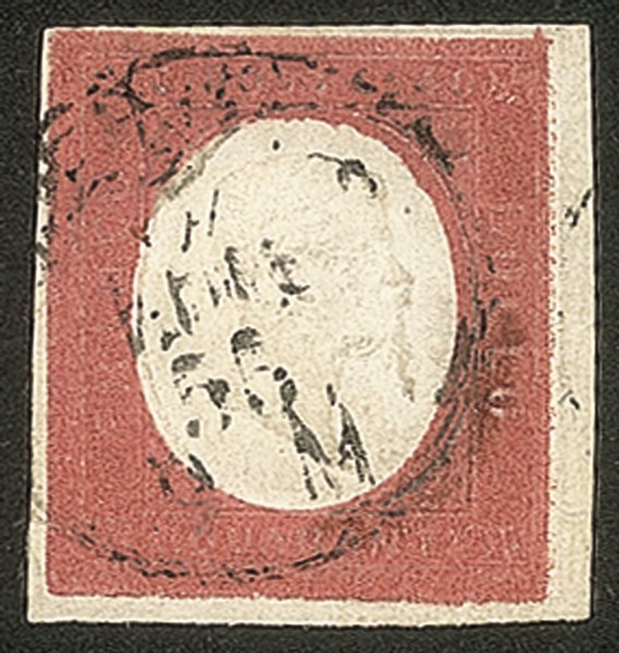 Antichi Stati Italiani - Sardegna - 1854 c.40 rosso mattone cupo (9a)