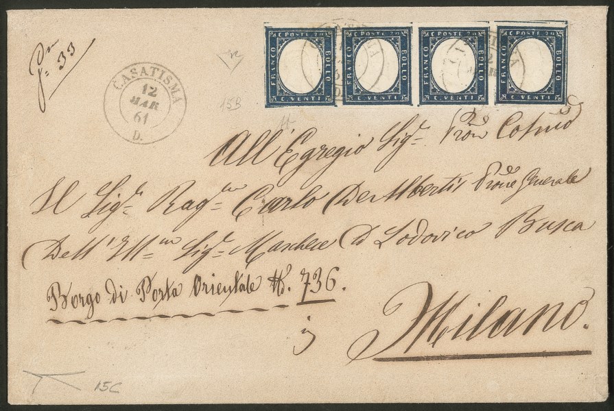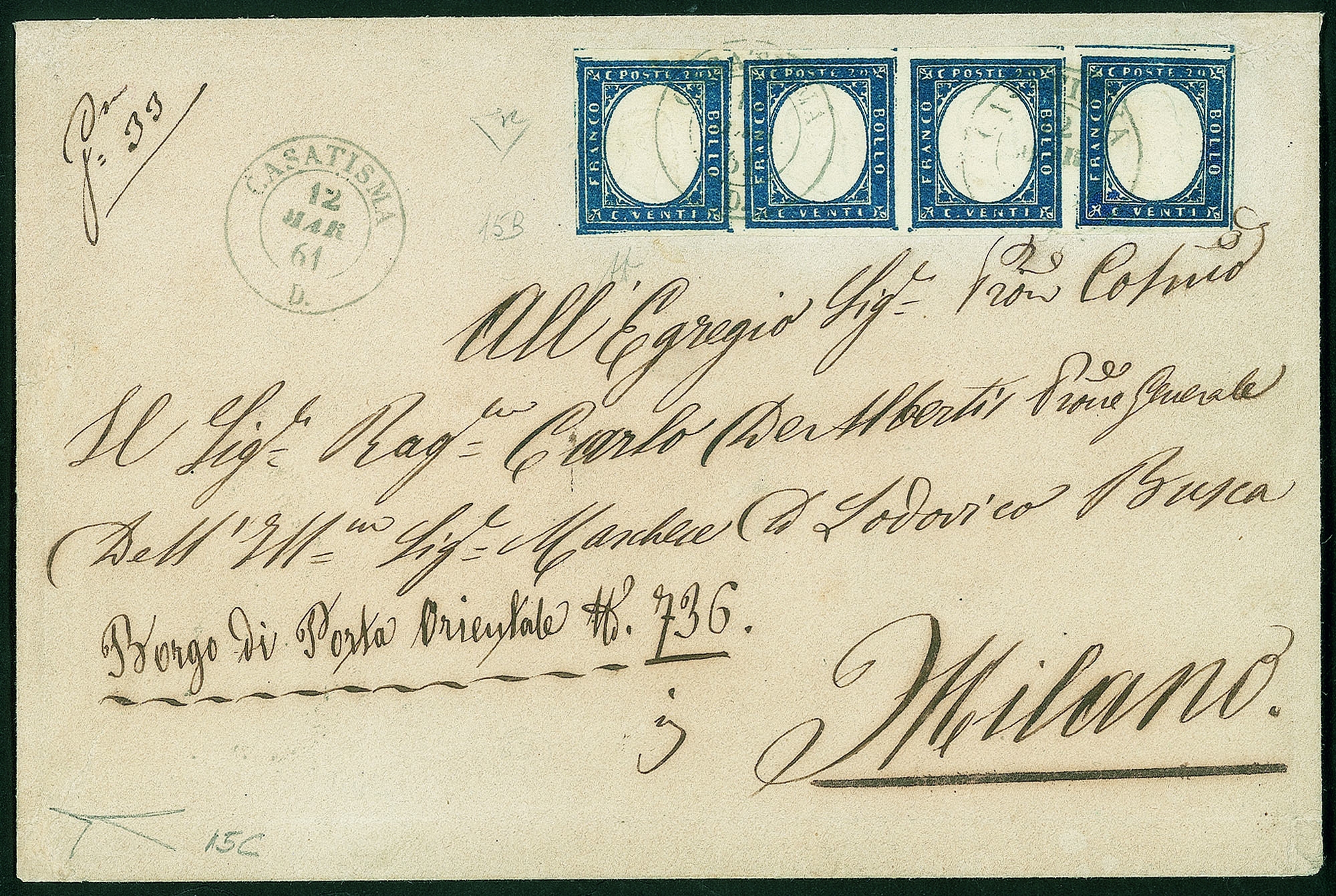 Da CASATISMA 12 MAR.61 per Milano, ultimi giorni del Regno di Sardegna, cert. E.Diena