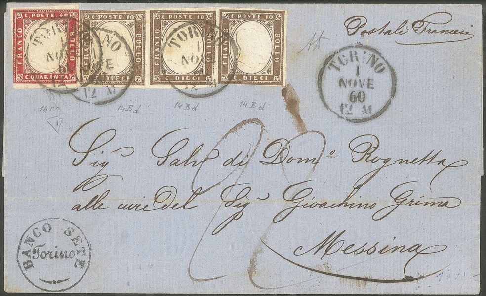 Antichi Stati Italiani - Sardegna - Lettera via di Mare coi postali Francesi da TORINO 1 NOV.60