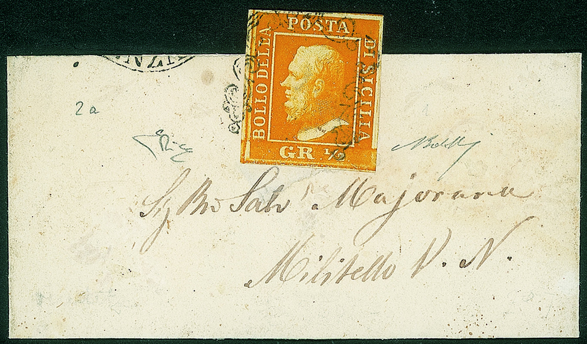Antichi Stati Italiani - Sicilia - Fascetta per stapati affrancata con gr. 1/2 arancio, seconda tavola (2)