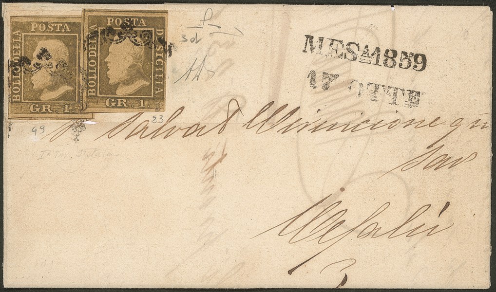 Antichi Stati Italiani - Sicilia - Lettera da Messina a Cefalù 17 ottobre 1859