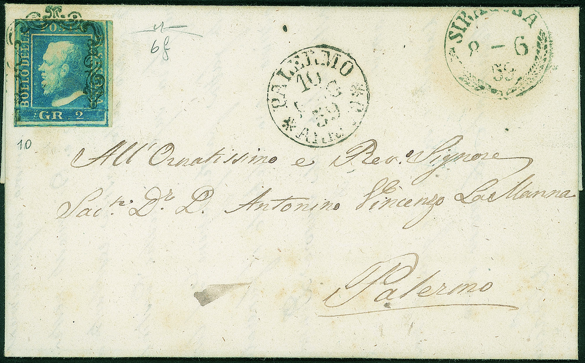 Antichi Stati Italiani - Sicilia - Lettera da Siracusa a Palermo 10 maggio 1859