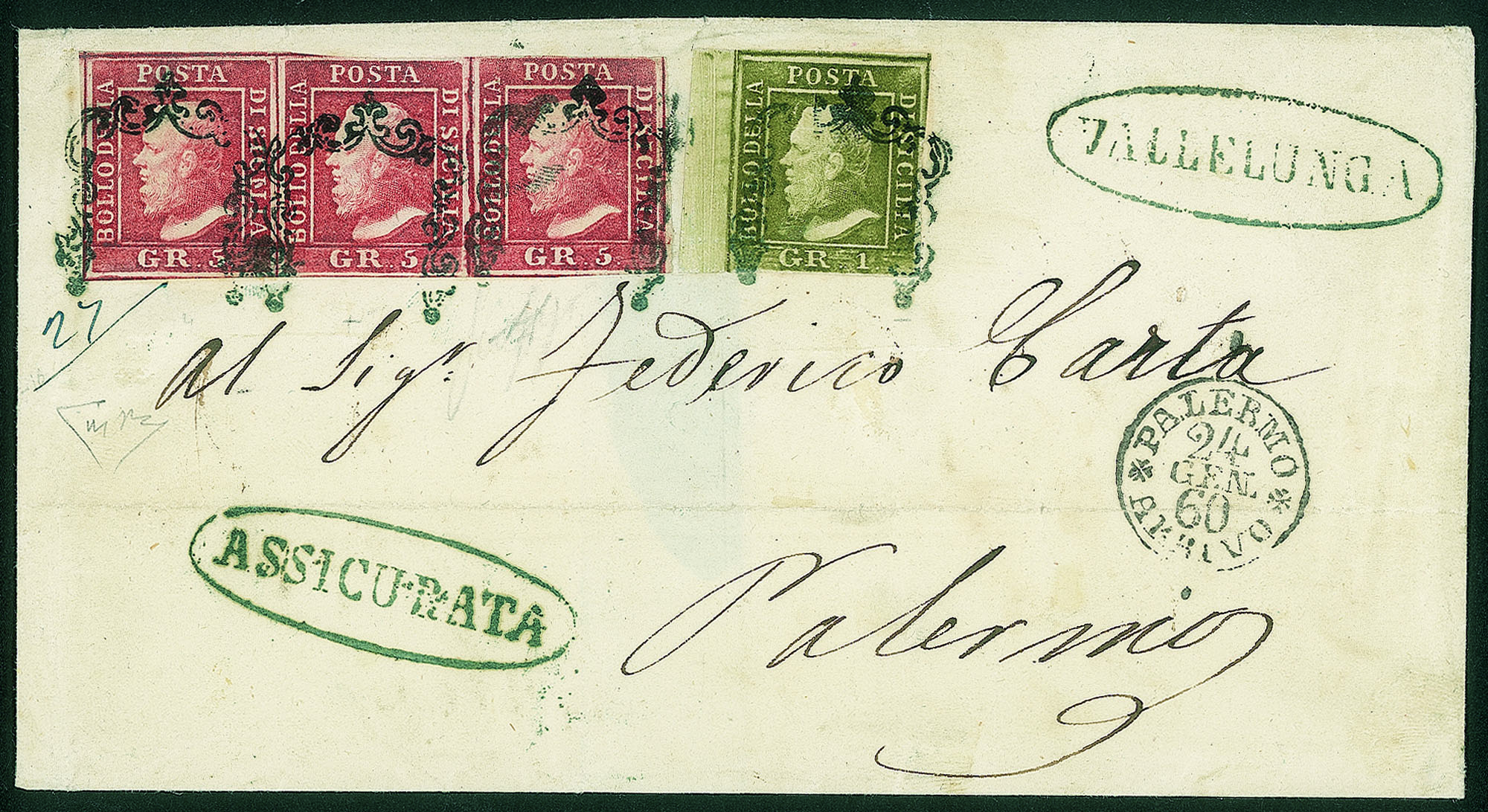 Antichi Stati Italiani - Sicilia - Lettera assicurata da VALLELUNGA per Palermo 24 gen.60
