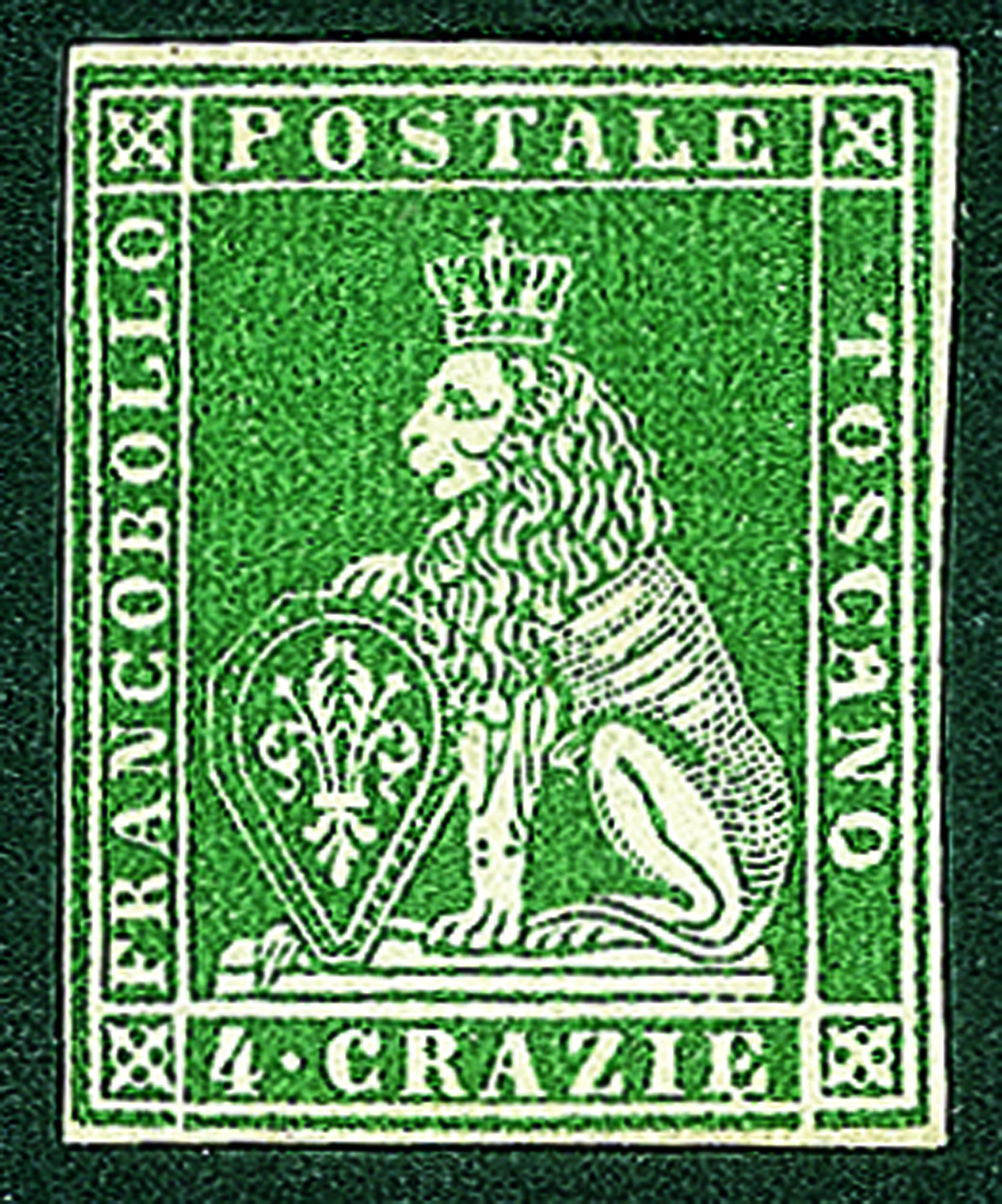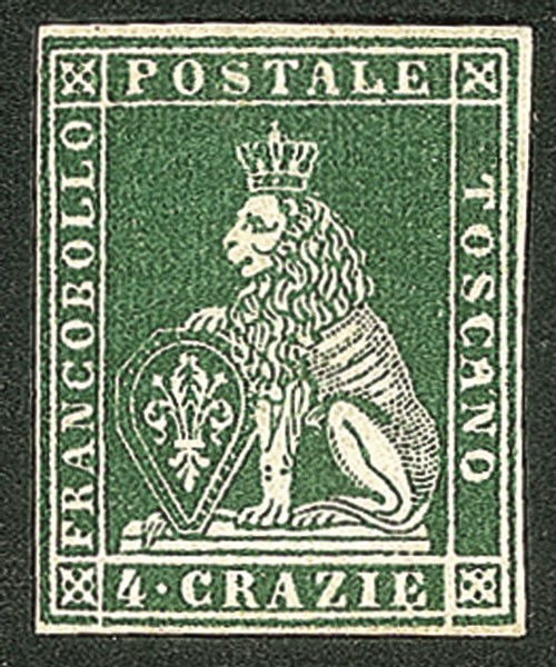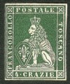 Antichi Stati Italiani - Toscana - 1851 cr.4 verde giallo scuro su grigio (6d)