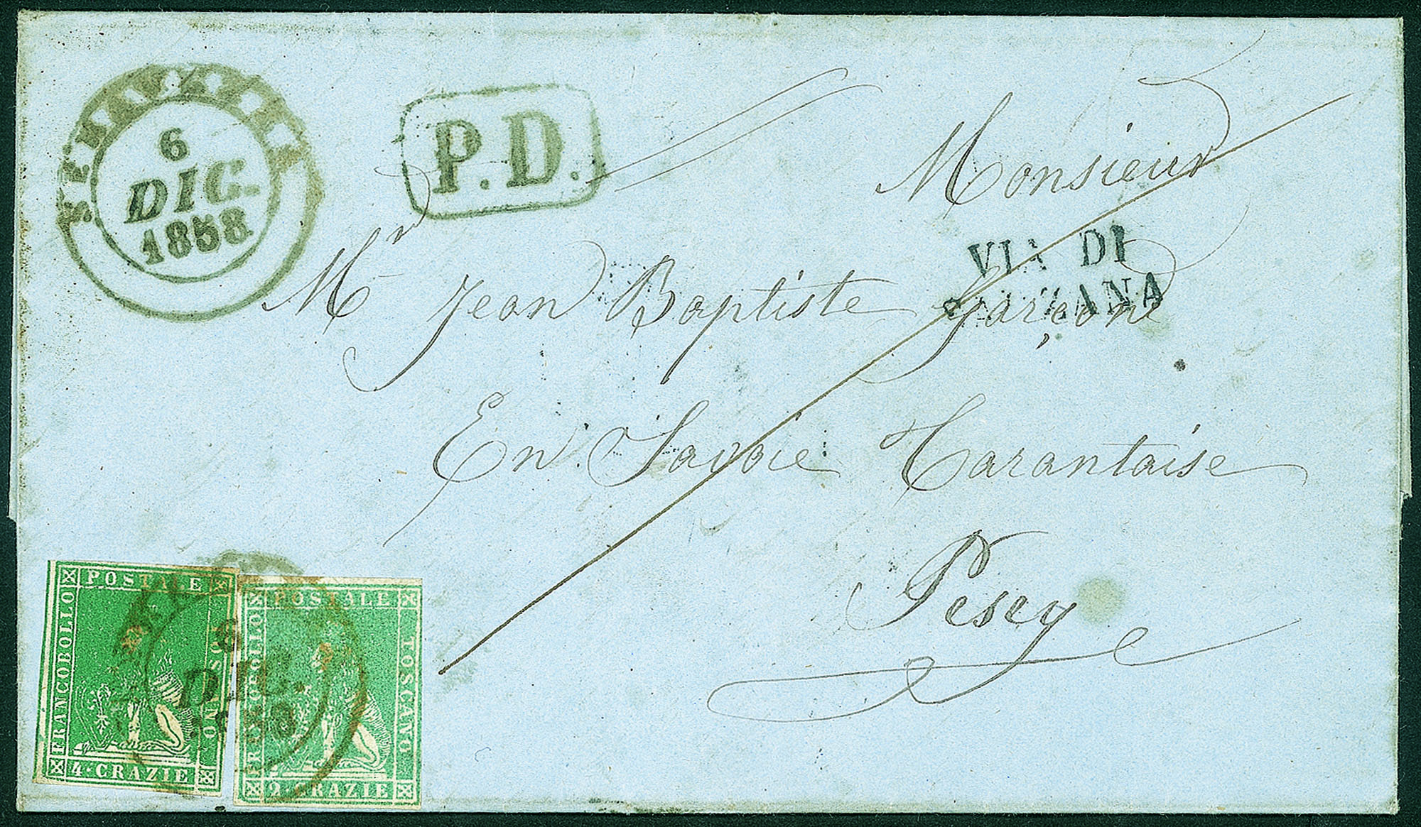 Antichi Stati Italiani - Toscana - Lettera per la Savoia da SERRAVEZZA 6 DIC.1858 a Pesey, frazione di Aime
