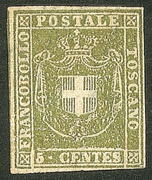 Antichi Stati Italiani - Toscana - 1860 Governo Provvisorio c.5 verde oliva (18a)