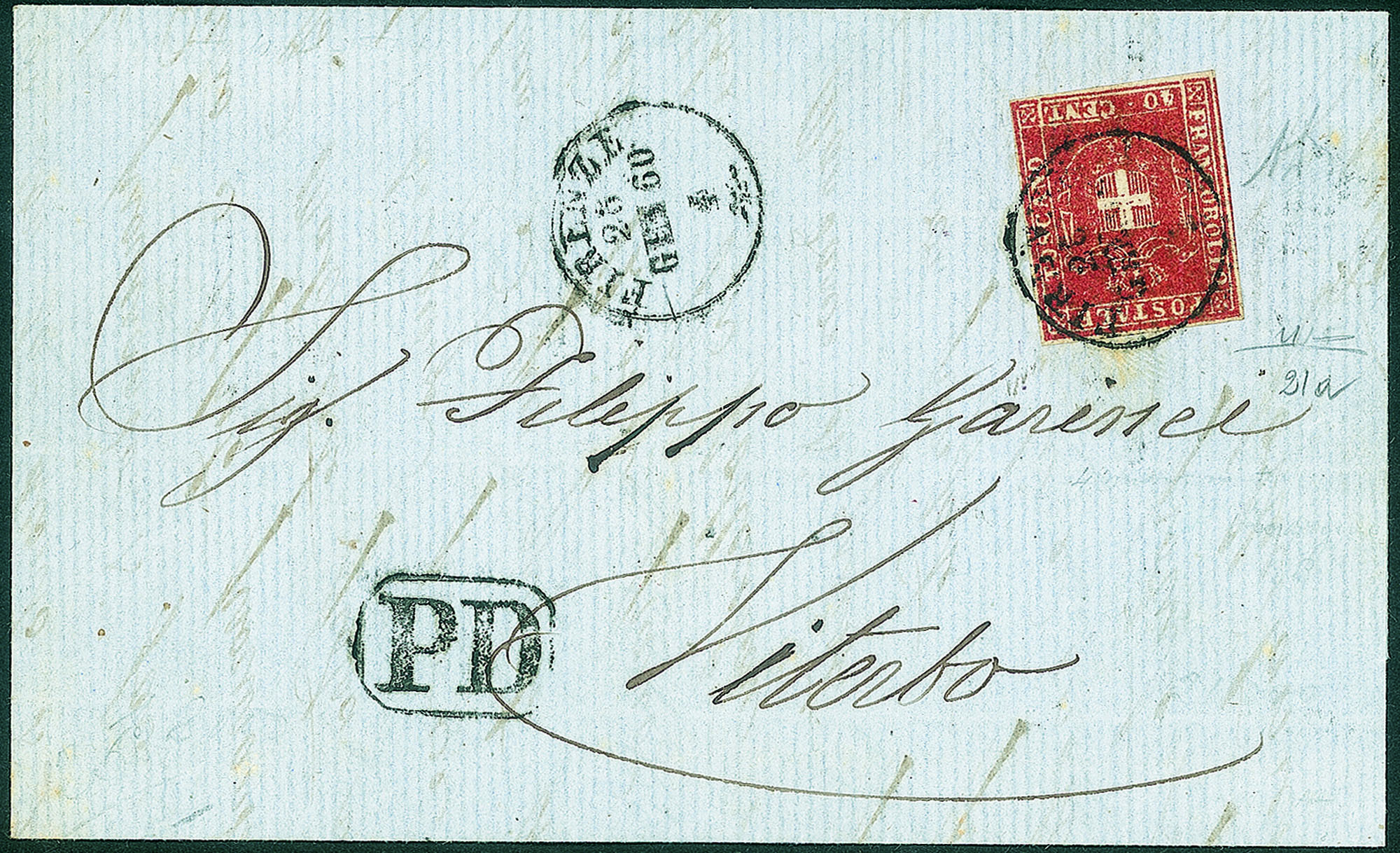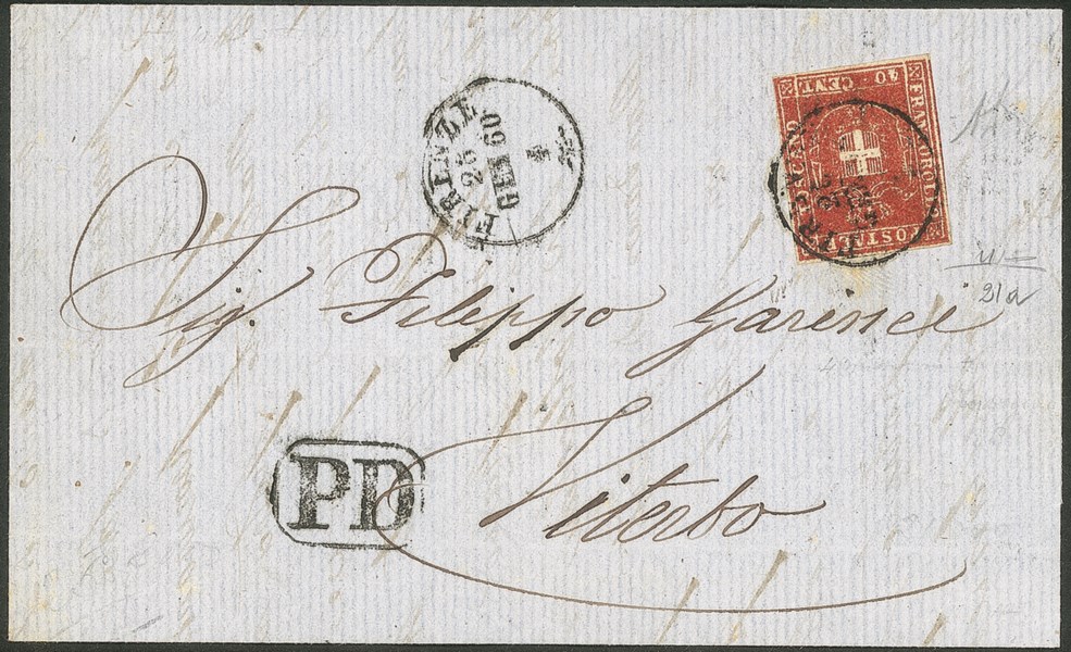 Antichi Stati Italiani - Toscana - Lettera affrancata con 40 cent carminio scarlatto (21a)