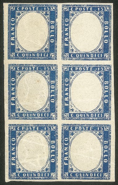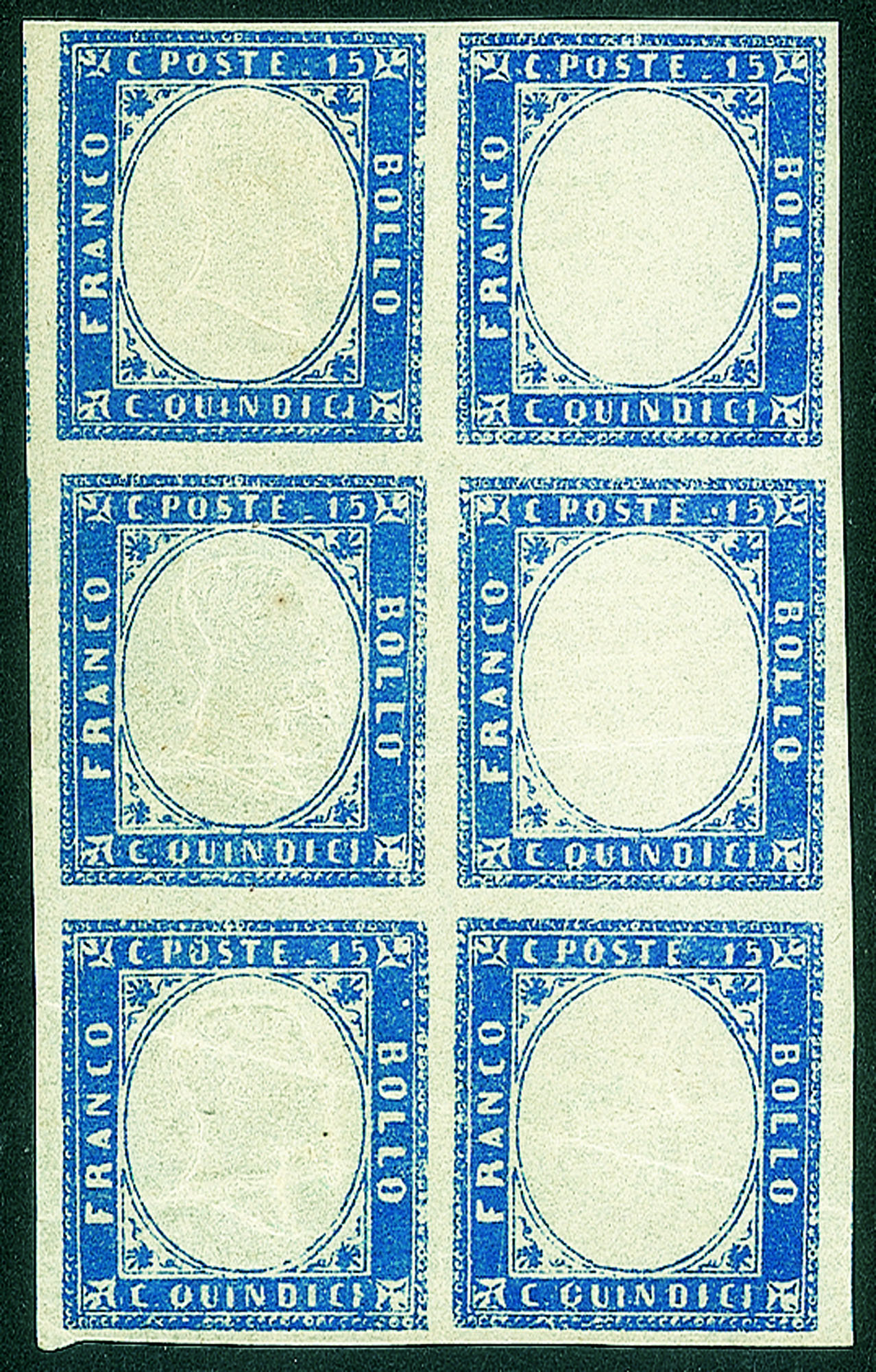 Regno - Vittorio Emanuele II - 1863 - Blocco di sei del 15 cent (11n + 11na)