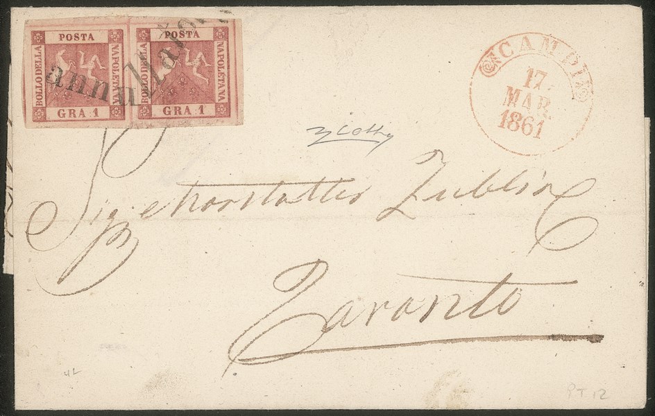 Antichi Stati Italiani - Napoli - Lettera affrancata con coppia gr.1 carminio vivo, seconda tavola, (4)