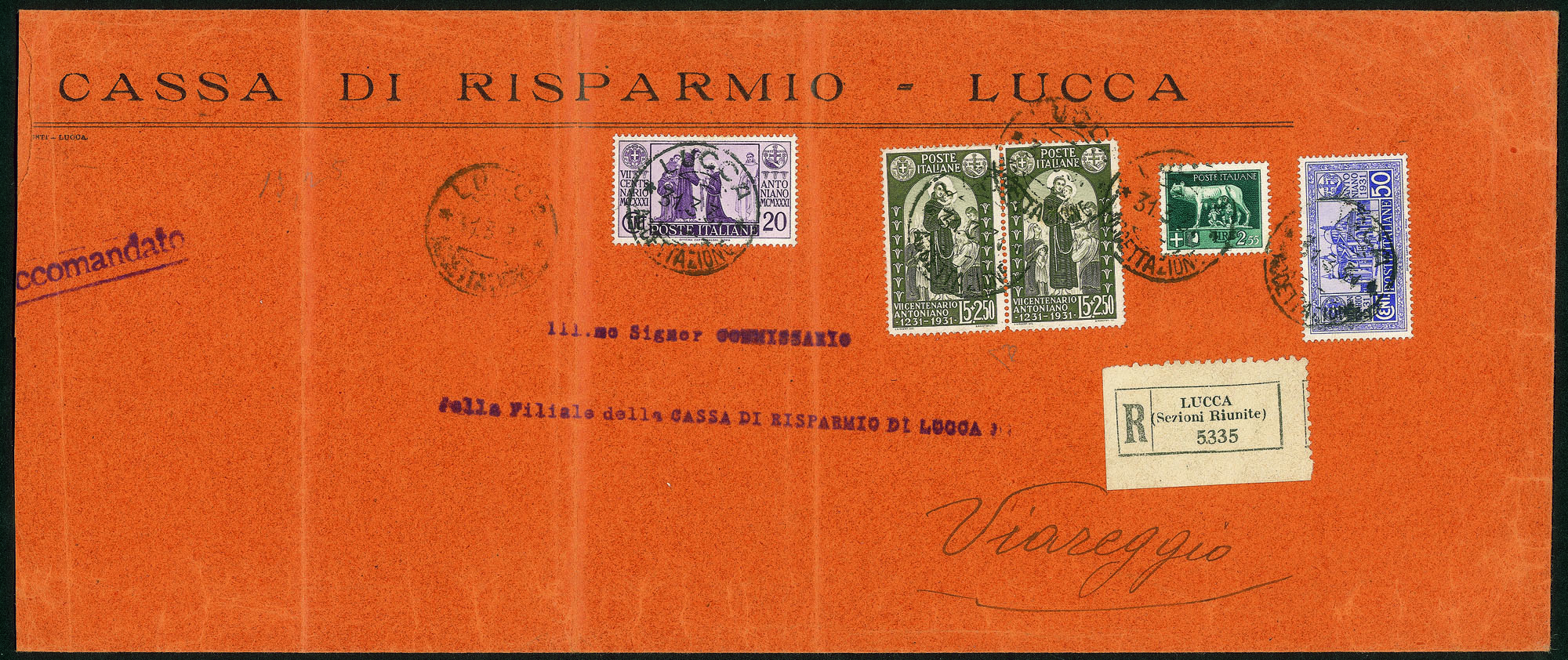 Regno - Vittorio Emanuele III - Raccomandata ventiquattro porti da LUCCA 31.3.31