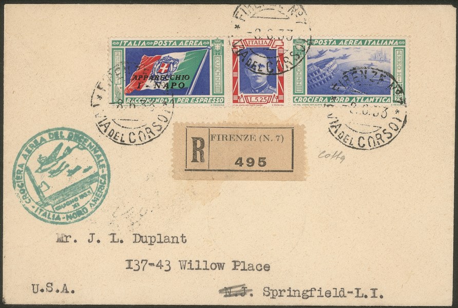 Regno - Vittorio Emanuele III - 1933 - Crociera Aerea del Decennale - Volo Roma New York - Longhi 2860