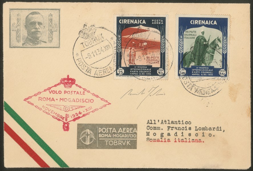 Regno - Vittorio Emanuele III - 1934 - Volo Roma Mogadiscio - Longhi 3205