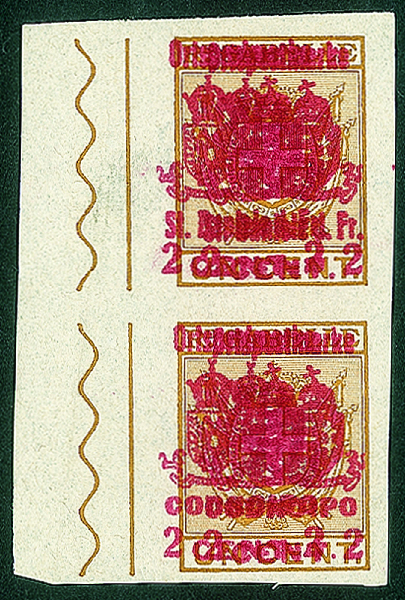 Occupazioni I guerra mondiale - Coppia verticale bordo di foglio del 2 su 1 cent (14aa + 46aa)