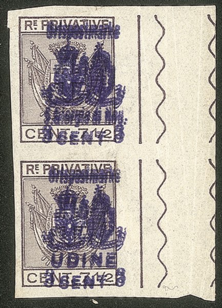 Occupazioni I guerra mondiale - Coppia verticale del 3 su 7 1/2 cent Udine (71a)