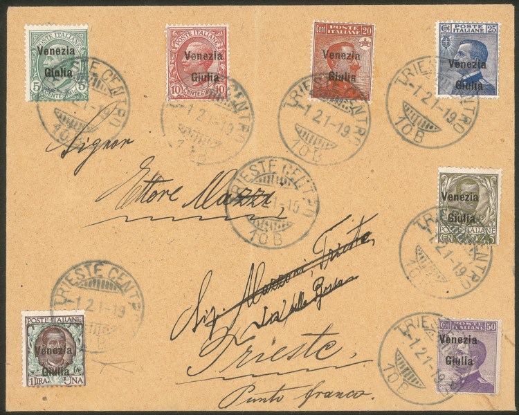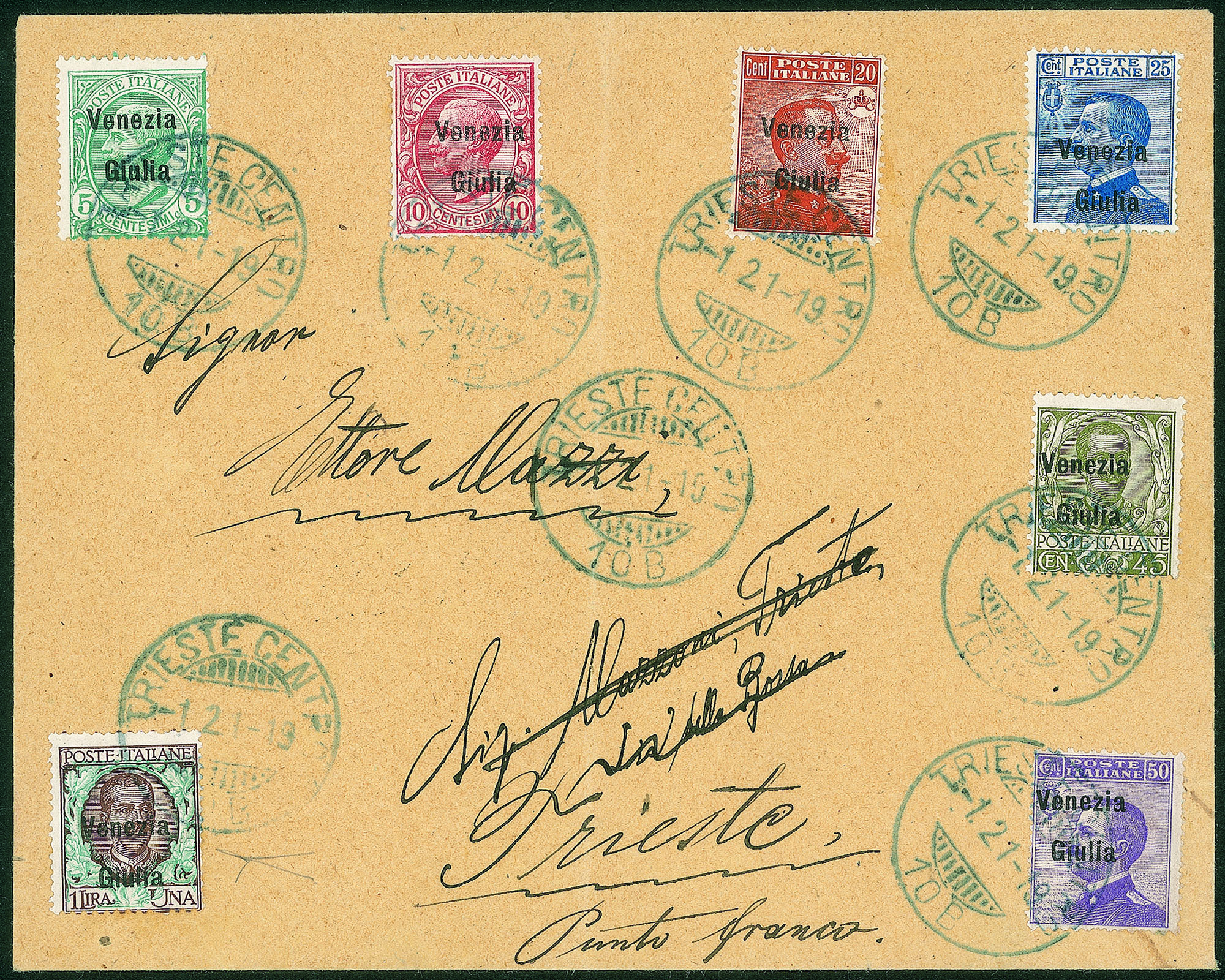 Occupazioni I guerra mondiale - Busta affrancata con valori di Floreale Leoni e Michetti (21/24 + 26/27 + 29)