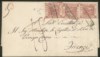Antichi Stati Italiani - Napoli - Lettera affrancata con tre esemplari del 5 grana rosa brunastro (8a cat.8750)