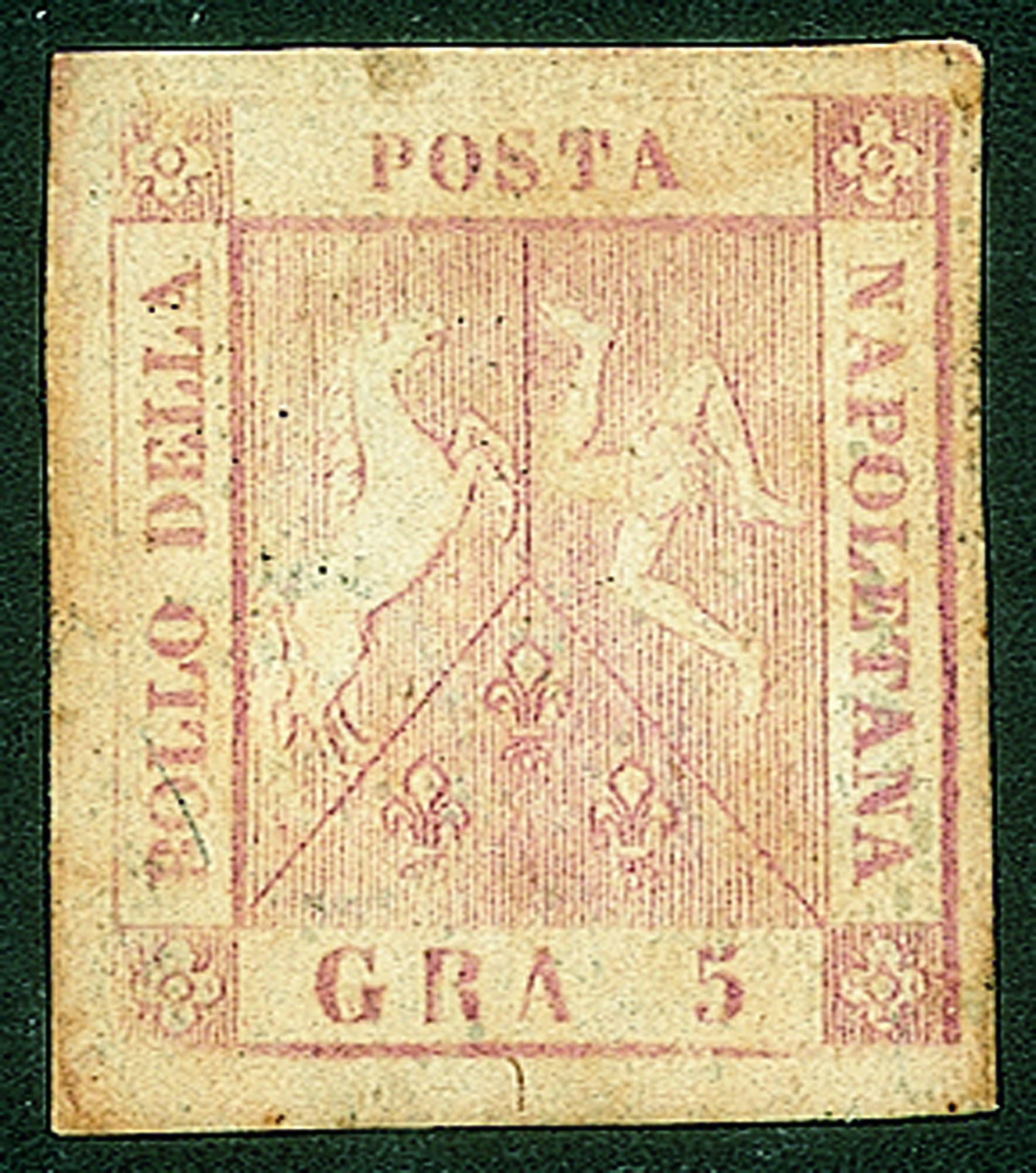 Antichi Stati Italiani - Napoli - 1858 gr.5 rosa chiaro I tavola (8c)