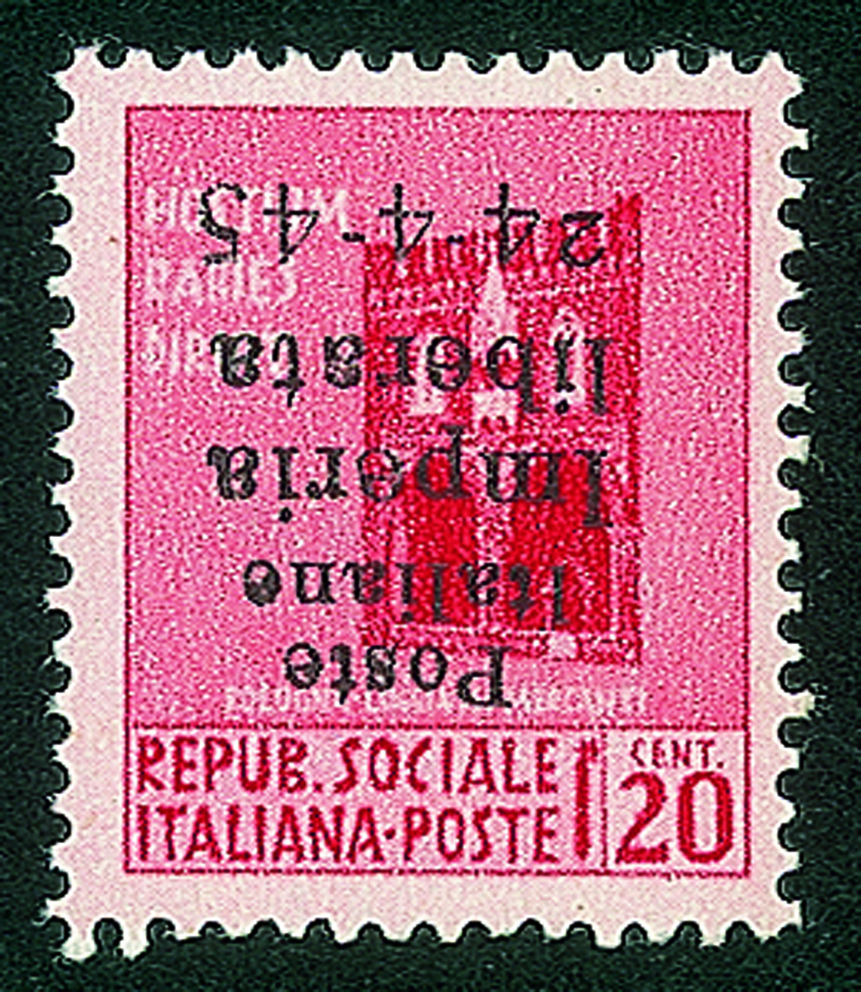 Emissioni CLN - 1945 - Non Emesso - 20 cent (22a) con soprastampa capovolta