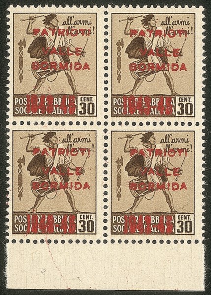 Emissioni CLN - 1945 - 30 cent (4A) - quartina bordo foglio
