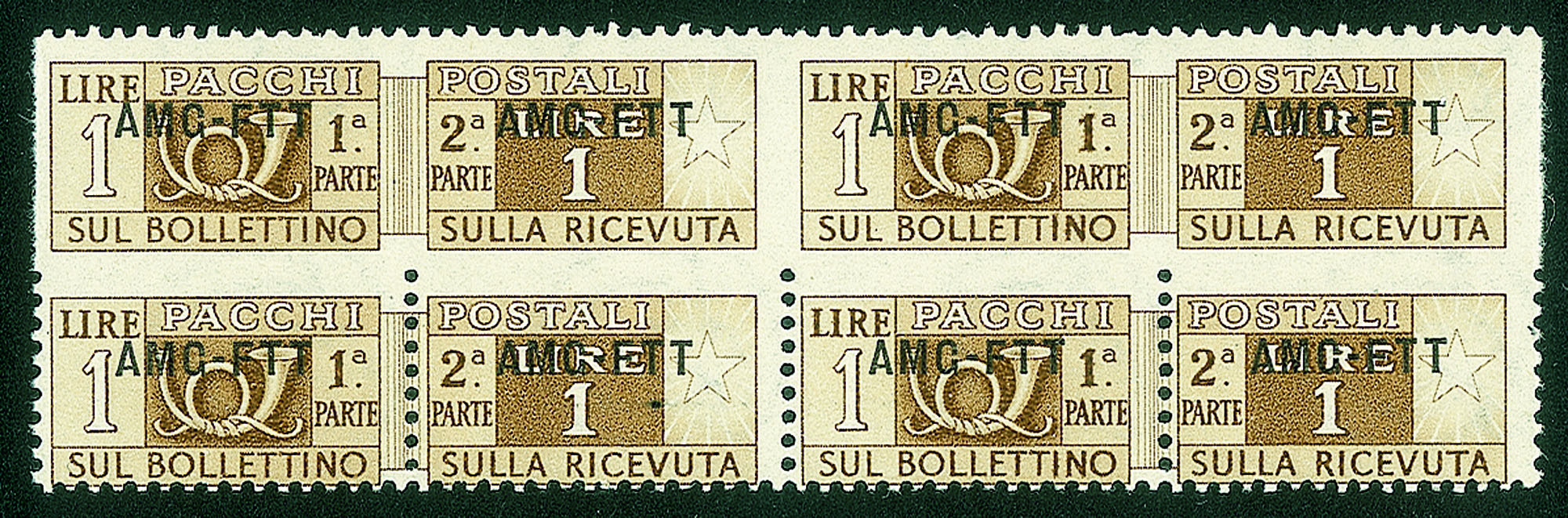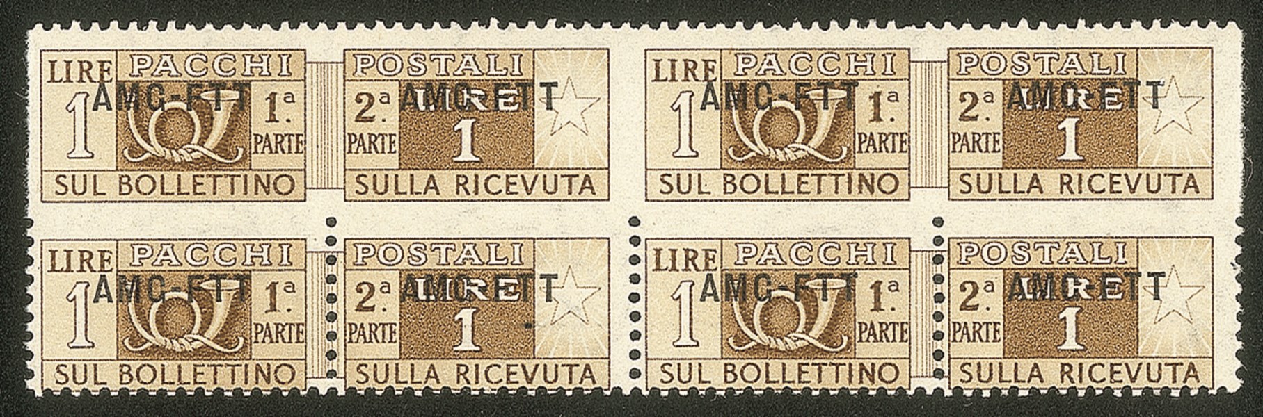 Trieste AMG FTT - 1949/1953 Quartina del 1 lira Pacchi Postali (13q)