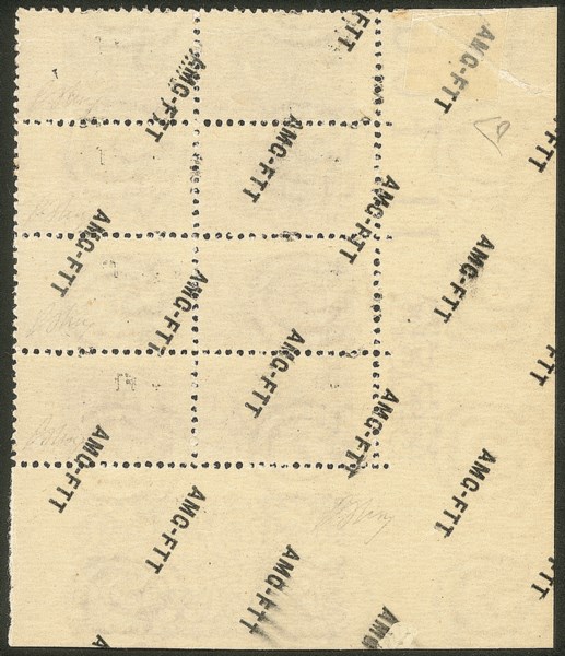 Trieste AMG FTT - 1949/1953 - Blocco di quattro angolo di foglio del 10 lire Pacchi Postali (18a)