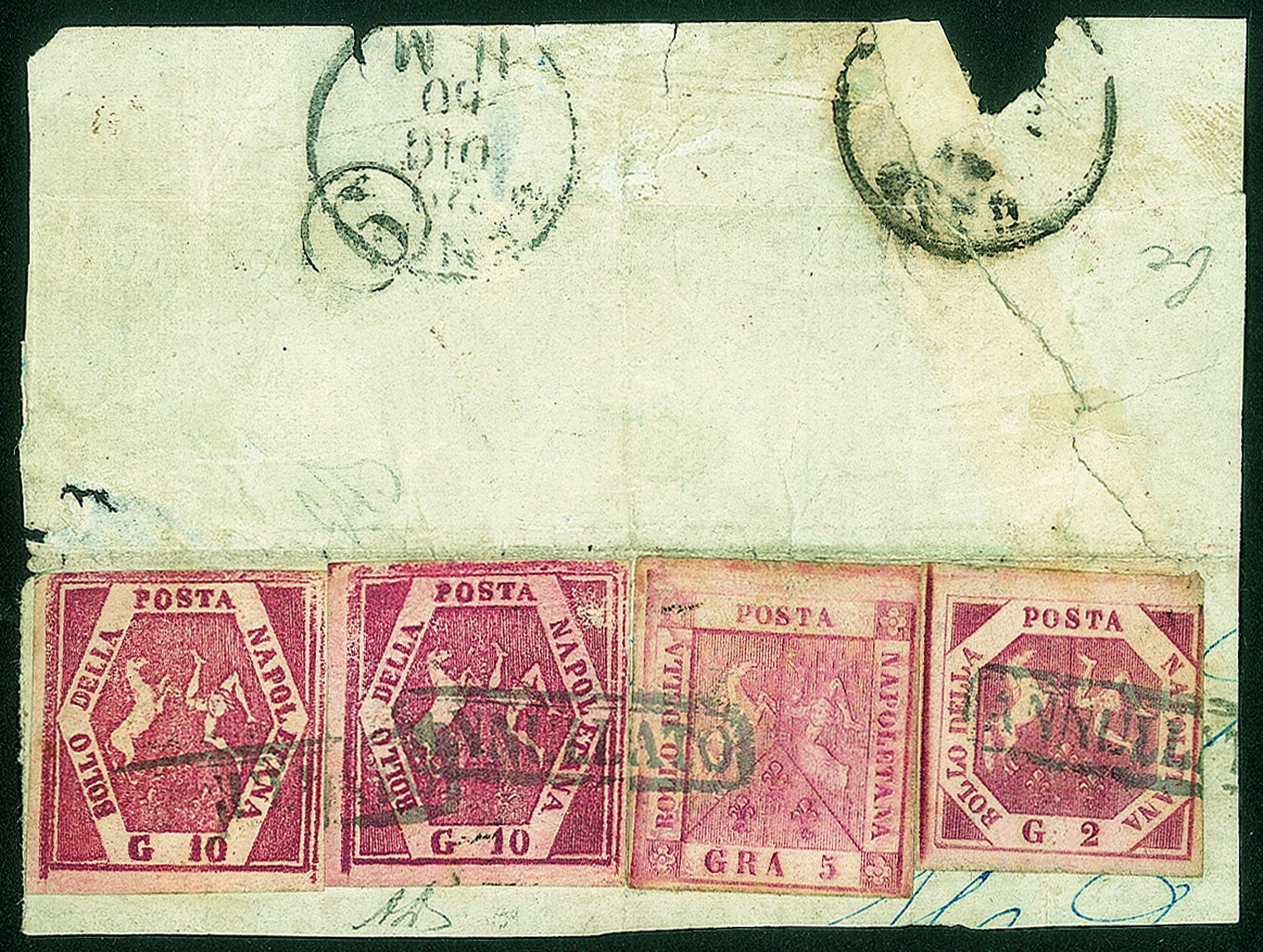 Antichi Stati Italiani - Napoli - Ampio frammento di lettera con due esemplari Falsi per posta